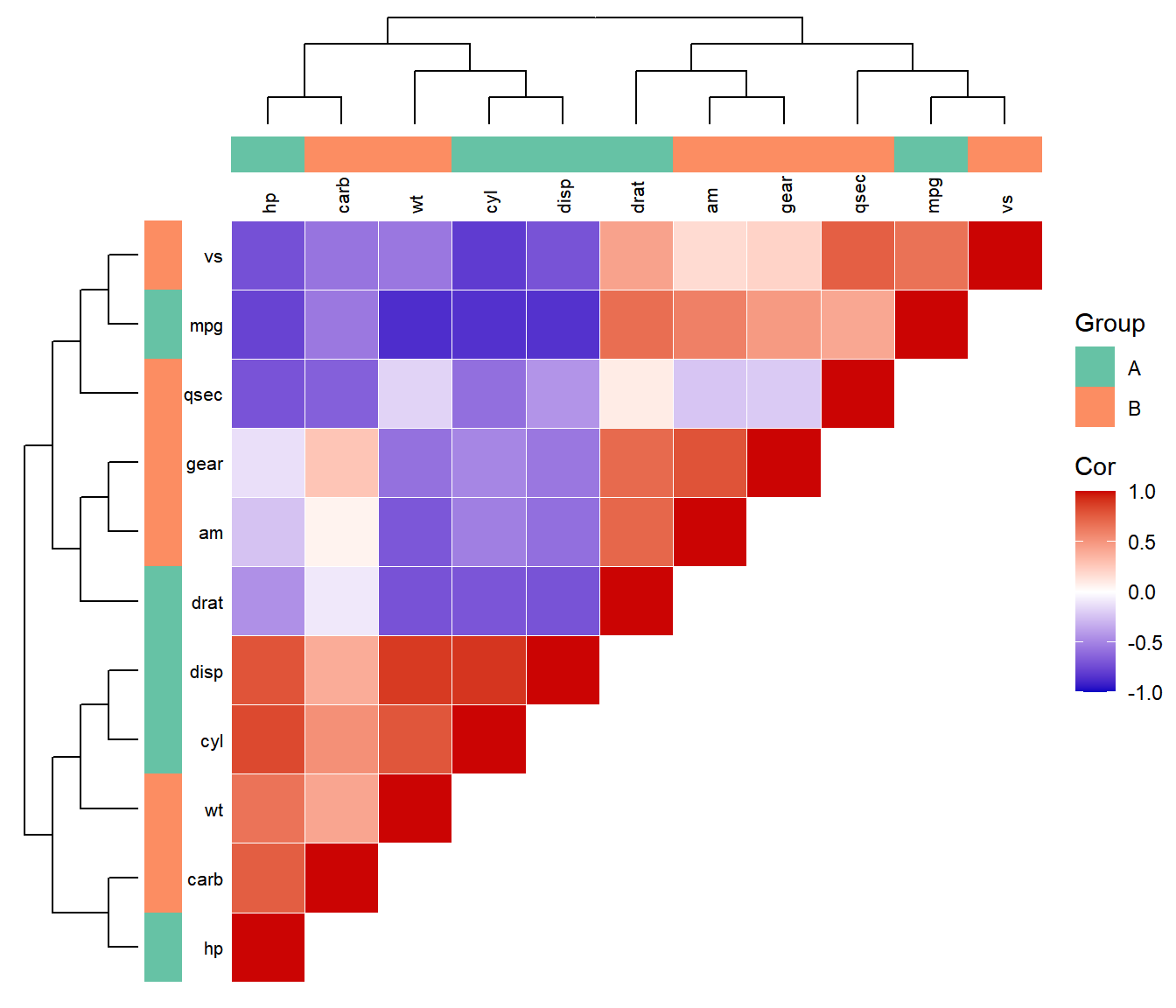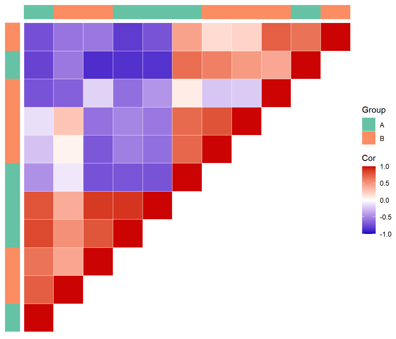 "Group" = c(rep("A", 5), rep("B", 6)) # 分组:前5个变量为A组,后5个为B组